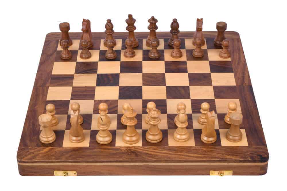 - The chessmen are kept inside the folding chess board.